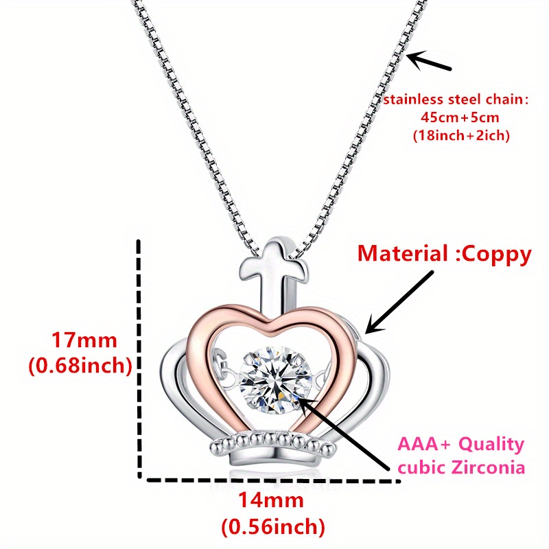 · Elegant Design: The Crown Necklace with Copper Inlaid Zirconium is a perfect gift for your daughter or mom. The intricate design of the crown adds a touch of elegance to any outfit.